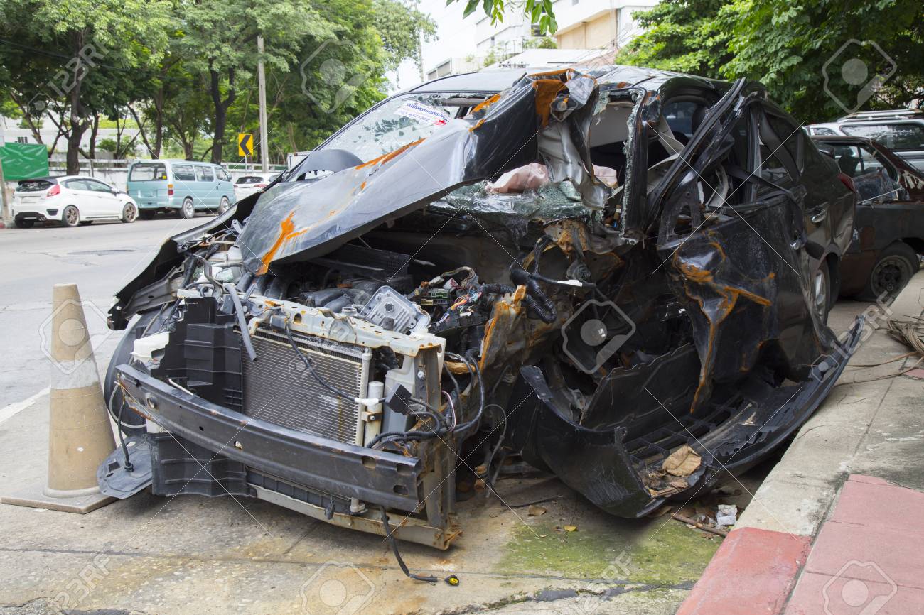Black Car Crashed Accident On Road Stock Photo Picture And Royalty Free Image Image 64645943